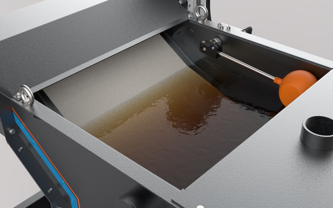 İlk aşamada kirli soğutma sıvısı, giriş dağıtıcısı vasıtasıyla filtreye basınçsız olarak beslenir, kağıt filtreden geçer ve temizlenerek aşağıdaki temiz tankına ulaşır.